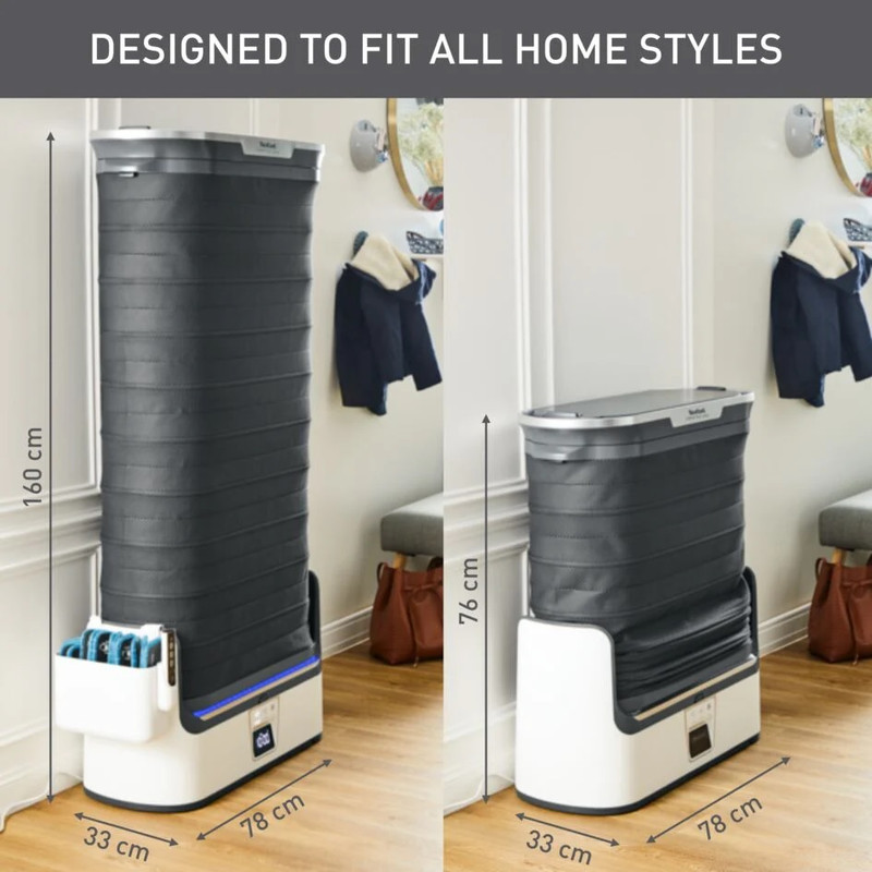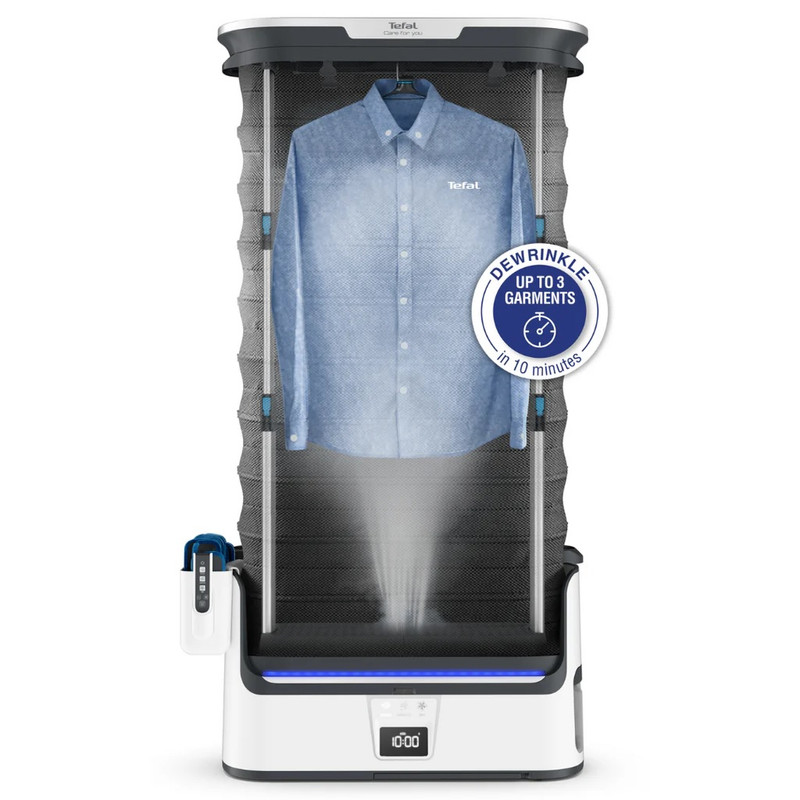 اولین بخارگر تمام اتومات تفال، بخارگر فوق پیشرفته تفال علاوه بر اینکه پاک کننده چین و چروک کامل لباس است قابلیت ضد عفونی البسه و همچنین از بین برنده بو لباس ها میباشد که شستشو لباس را به مراتب کاهش میدهد، تا ۹۹.۹۹ % از بین برنده باکتری ها و ضد عفونی میباشد که علاوه بر البسه میتوانید عروسک های پارچه ای را برای فرزندان خود ضد عفونی کنید، اتو کشی لباس های روزمره در کمترین زمان ممکن بدون نیاز به دخالت دست فقط کافیست البسه را آویزان کنید و بهترین نتیجه را از دستگاه خواهید.