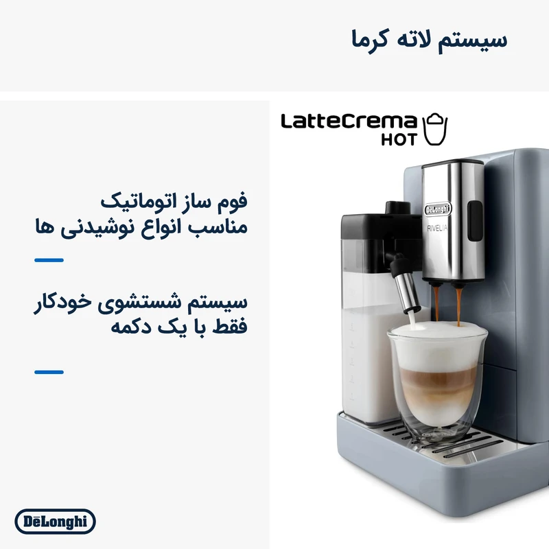 عملکرد تماماتوماتیک: آمادهسازی سریع اسپرسو، کاپوچینو و لاته تنها با فشردن یک دکمه.