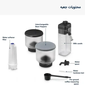 آسیاب داخلی: مجهز به آسیاب قهوه با درجه تنظیمات مختلف برای پودر کردن تازه دانهها.