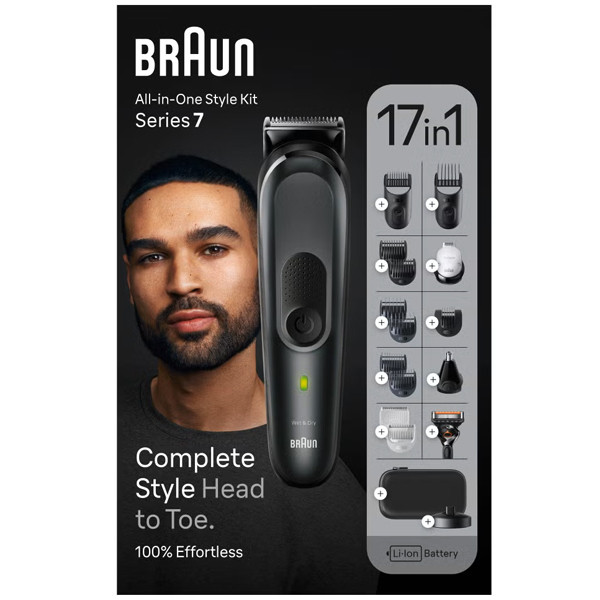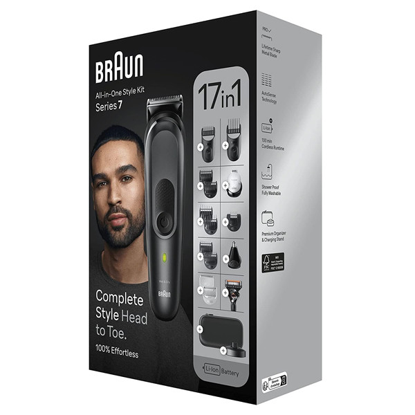اگر به دنبال یک ماشین اصلاح همهکاره، دقیق و حرفهای هستی، مدل MGK7491 از برند معتبر Braun دقیقاً همون چیزیه که نیاز داری. این دستگاه با طراحی ارگونومیک و امکانات متنوعش، به شما کمک میکنه تا استایل دلخواه خودتون رو بهسادگی و بدون نیاز به چندین دستگاه مختلف، در خانه انجام بدید.